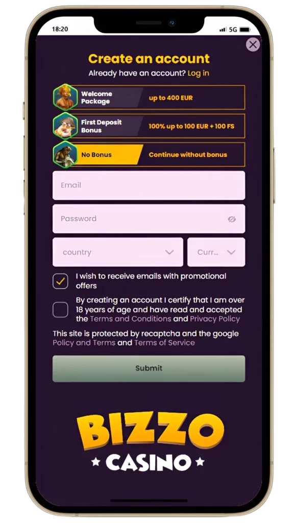 Συνδεθείτε και εγγραφείτε στο Bizzo Casino
