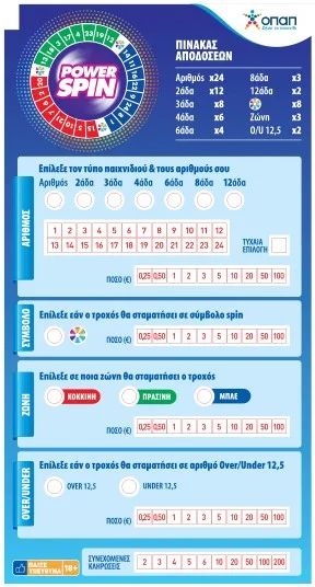 Στο παιχνίδι Powerspin της ΟΠΑΠ, η επιτυχία εξαρτάται από την ακριβή πρόβλεψη των αποτελεσμάτων στον τροχό, ο οποίος έχει στοιχεία κοινά με τη ρουλέτα. Παρά την απλότητα των επιλογών στοιχηματισμού, αυτές προσφέρουν συχνά ανταμοιβές υψηλότερου ρίσκου. Για παράδειγμα, ένας ποντάρισμα σε μονό αριθμό πληρώνει x24, παρά την ύπαρξη 27 διαφορετικών φετών στον τροχό. Επίσης, εάν ποντάρετε στο ειδικό σύμβολο Spin, η απόδοση είναι x8.