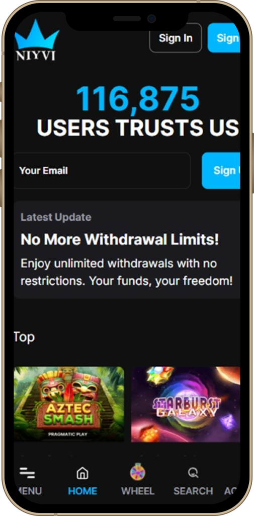 Το Niyvi Casino έχει σχεδιαστεί με γνώμονα τη σύγχρονη εμπειρία χρήστη και προσφέρει πλήρως βελτιστοποιημένη έκδοση για κινητά. Η mobile πλατφόρμα είναι προσβάσιμη απευθείας από το πρόγραμμα περιήγησης, χωρίς ανάγκη εγκατάστασης εφαρμογής, διατηρώντας την ίδια λειτουργικότητα και ποιότητα με την desktop έκδοση. Παίκτες μπορούν να απολαμβάνουν όλα τα παιχνίδια, να πραγματοποιούν καταθέσεις και αναλήψεις, καθώς και να συμμετέχουν σε προσφορές από οπουδήποτε.