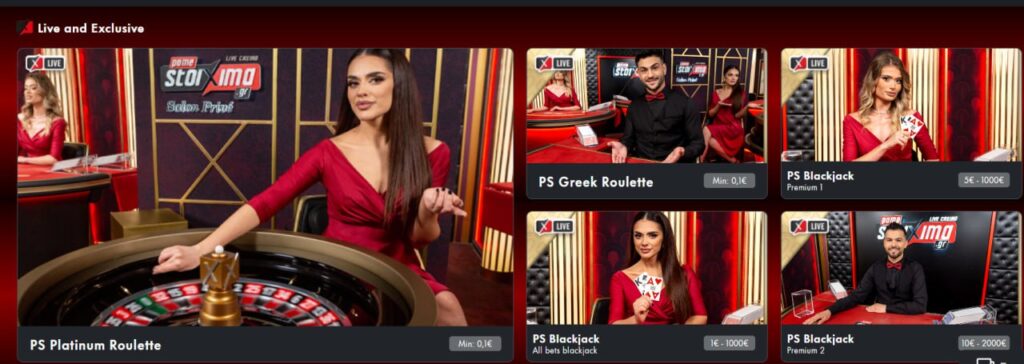 - Ζωντανά Παιχνίδια Καζίνο: Το Pamestoixima Καζίνο προσφέρει περισσότερα από 170 ζωντανά τραπέζια, επιτρέποντας στους παίκτες να απολαμβάνουν ρουλέτα, μπλακτζακ, μπακαρά και πολλά άλλα παιχνίδια με ζωντανούς ντίλερ μέσω των κινητών τους συσκευών