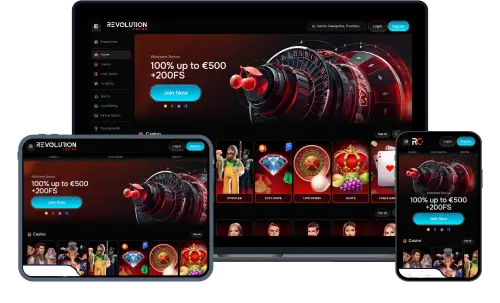 - Συμβατότητα με iOS και Android. Η έκδοση για κινητά του Revolution Casino είναι συμβατή με τις περισσότερες συσκευές iOS και Android, εξασφαλίζοντας ομαλή και απρόσκοπτη εμπειρία παιχνιδιού.