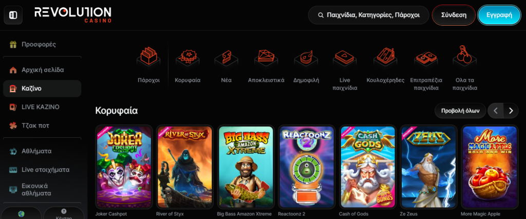 Παιχνίδια στο Revolution Casino