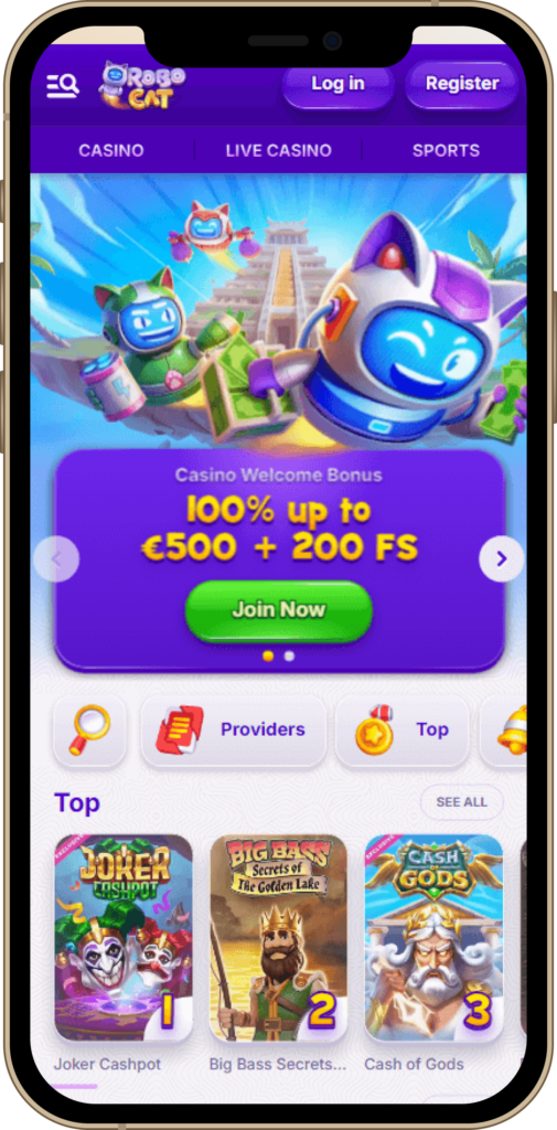 Το RoboCat Casino δεν απαιτεί την εγκατάσταση εφαρμογής, καθώς η ιστοσελίδα του είναι πλήρως βελτιστοποιημένη για κινητές συσκευές, προσφέροντας εύκολη πλοήγηση και απρόσκοπτη εμπειρία παιχνιδιού.