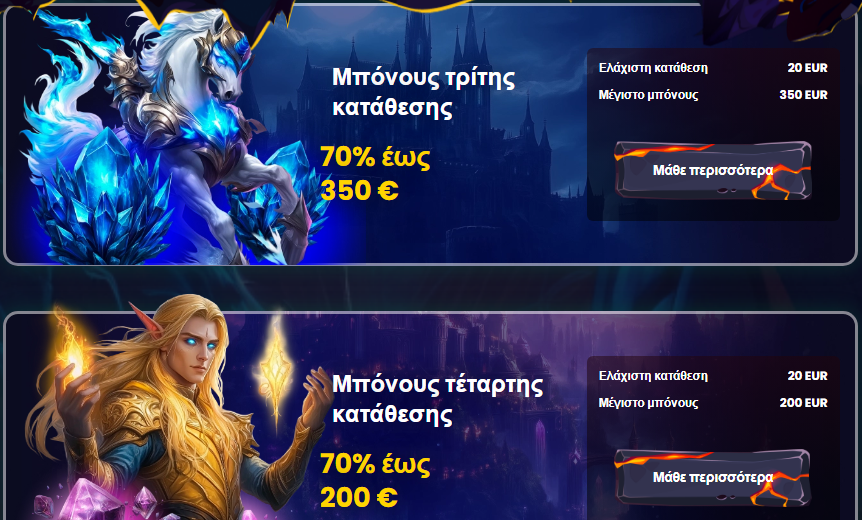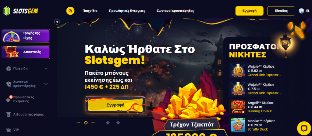 Το SlotsGem Casino λανσαρίστηκε το 2025 από τη Latcas B.V. και λειτουργεί με άδεια Curacao Gaming Control Board, αριθμός OLG/2024/1676/0905. Το πακέτο καλωσορίσματος φτάνει το 260 % έως 1 450 € με 225 δωρεάν περιστροφές στις πρώτες τέσσερις καταθέσεις, ενώ υπάρχουν εβδομαδιαία μπόνους και VIP πρόγραμμα με πρόσθετες ανταμοιβές. Οι πληρωμές γίνονται σε EUR, CAD, NZD, AUD και κρυπτονομίσματα (Bitcoin, Litecoin, Dogecoin), με επιλογές όπως Visa, Mastercard, Skrill, Neteller, Google Pay, Apple Pay, Paysafecard και Neosurf. Η ελάχιστη κατάθεση είναι 10 €, ενώ οι αναλήψεις πραγματοποιούνται χωρίς χρέωση με τις ίδιες μεθόδους. Το SlotsGem ξεχωρίζει ως ένα σύγχρονο και ευέλικτο casino χωρισ ταυτοποιηση, ιδανικό για παίκτες που αναζητούν άμεση πρόσβαση, ανωνυμία στις συναλλαγές και γρήγορες πληρωμές χωρίς περιττές διαδικασίες.