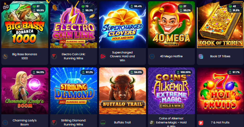Στο SlotsGem Casino θα βρεις μια μεγάλη ποικιλία παιχνιδιών που καλύπτουν κάθε γούστο και εμπειρία. Η πλατφόρμα προσφέρει δημοφιλείς κατηγορίες παιχνιδιών, από φρουτάκια μέχρι ζωντανά τραπέζια με πραγματικούς ντίλερ, εξασφαλίζοντας διασκέδαση και επιλογές για όλους τους παίκτες.