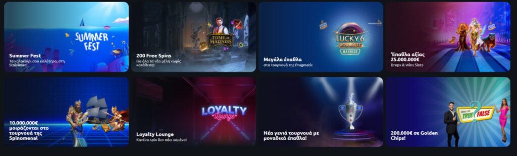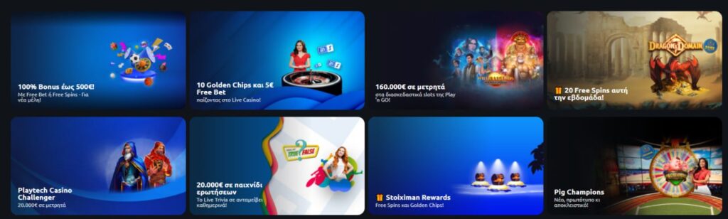 Το Stoiximan Casino προσφέρει διάφορες προσφορές και μπόνους, όπως μπόνους καλωσορίσματος, δωρεάν περιστροφές και προγράμματα επιβράβευσης για νέους και υπάρχοντες παίκτες.